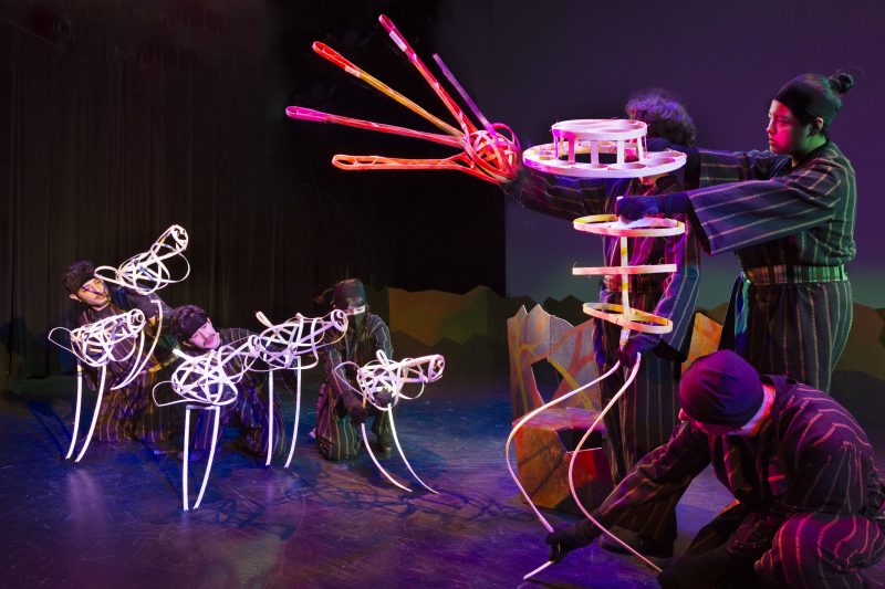 Through puppetry, projections, scenography, and costumes, the work— inspired by the Seri people of the Sonoran Desert—addresses themes such as migration, cultural diversity, and the climate crisis.”